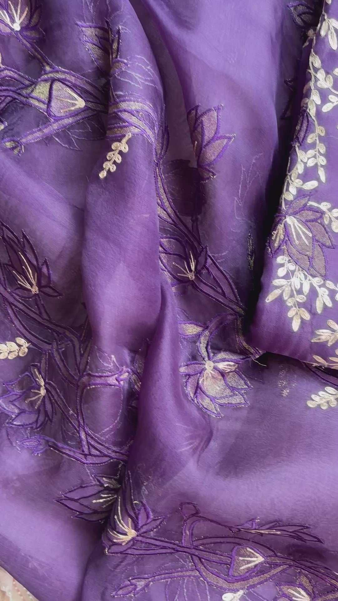 Pure Organza with Pitta Applique leaves Embroidery Suit